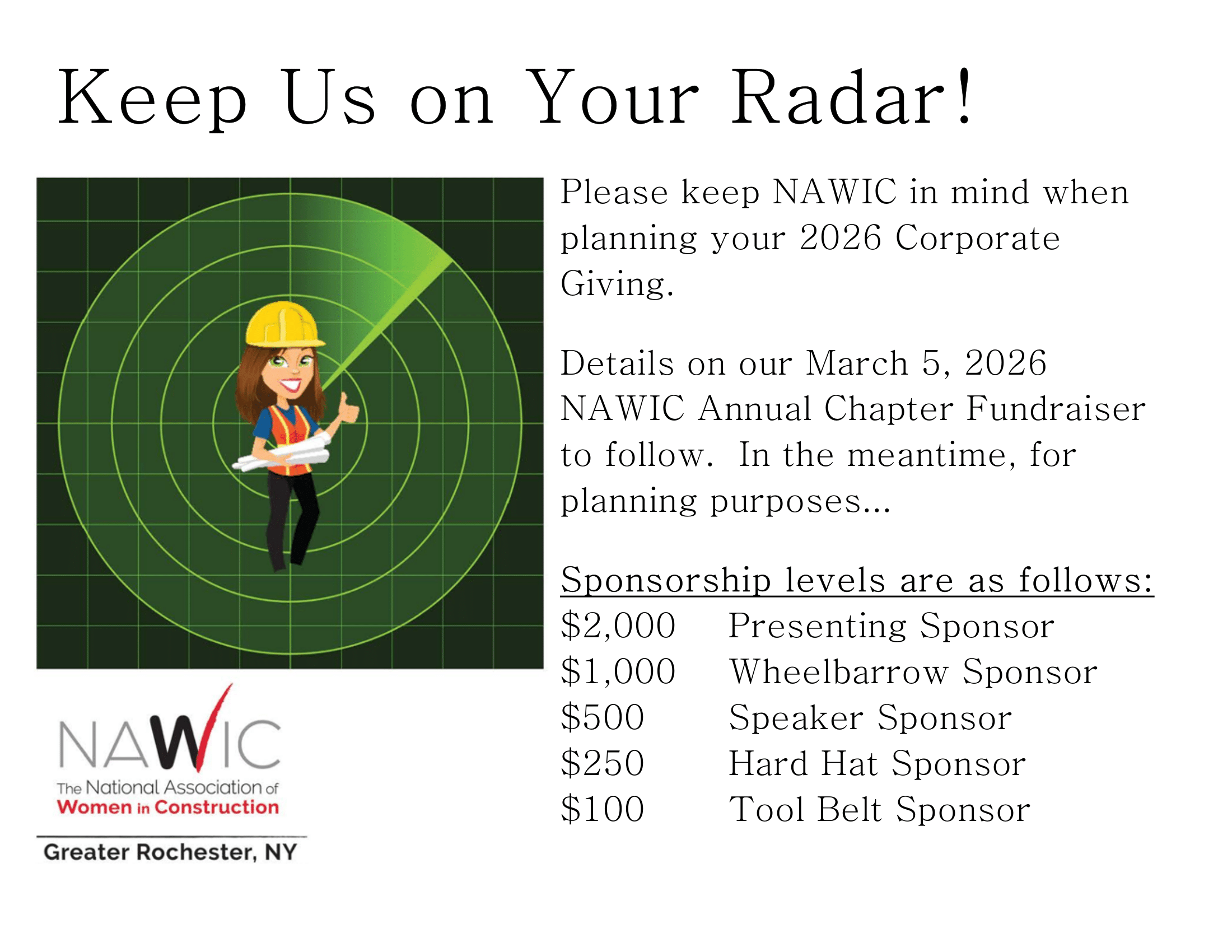 NAWIC Rochester offers many opportunites to its members, and members of the Rochester construction community. Click through below to see how you can participate.